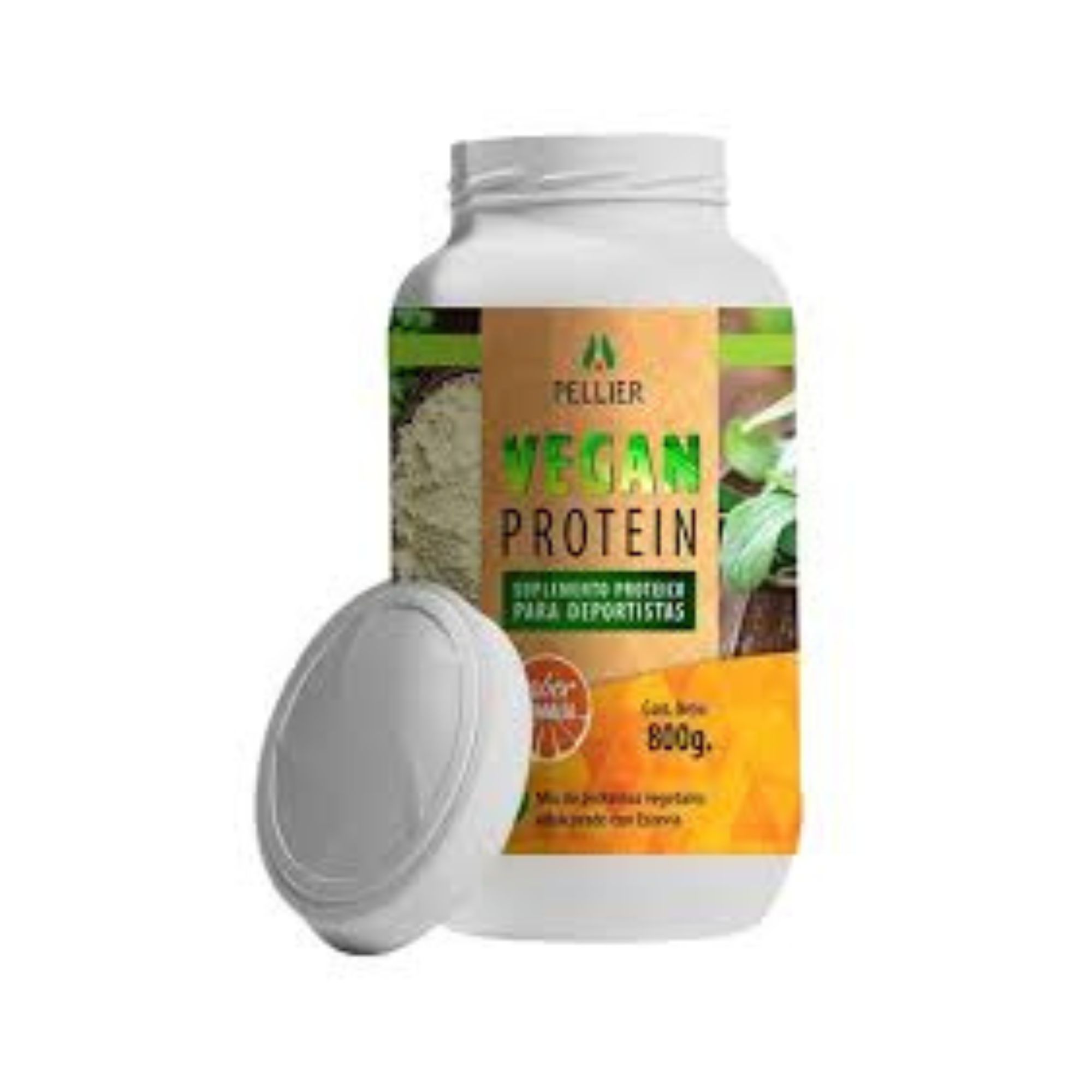 Suplemento vegano Pellier Vegan Protein en presentación de 800g, ideal para aumentar la masa muscular de manera saludable y sin ingredientes de origen animal.